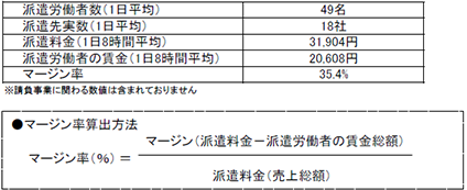 労働者派遣法(第23条 5項)に基づき、マージン率等について公開いたします。